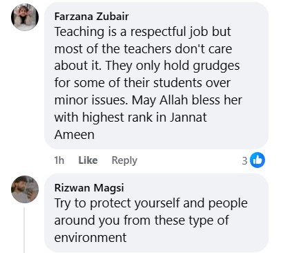 The news has left the internet in shock, with many expressing grief and anger over the situation. One user wrote, “Such teachers should have been dealt with strictly. May Allah bless the departed soul.” Another questioned, “Why didn’t the family remove their daughter from the college? Sadly, it’s too late now.” A third commented, “Why are such issues only highlighted after a tragedy occurs? This is truly heartbreaking.”