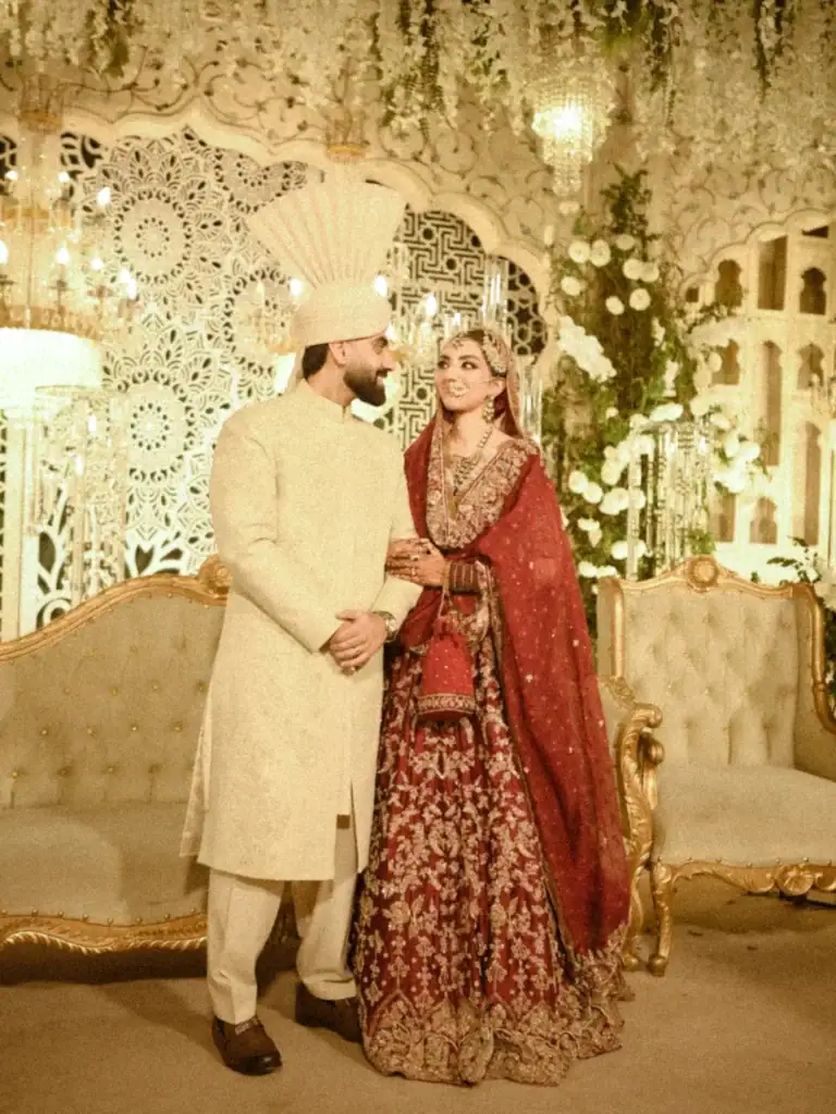 She was beautifully complemented by her groom, Moeez, who opted for an elegant ivory sherwani. Together, the couple looked graceful and picture-perfect, winning hearts with their chemistry and style.