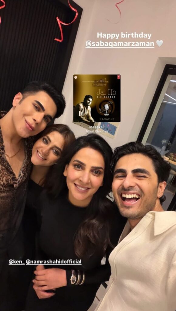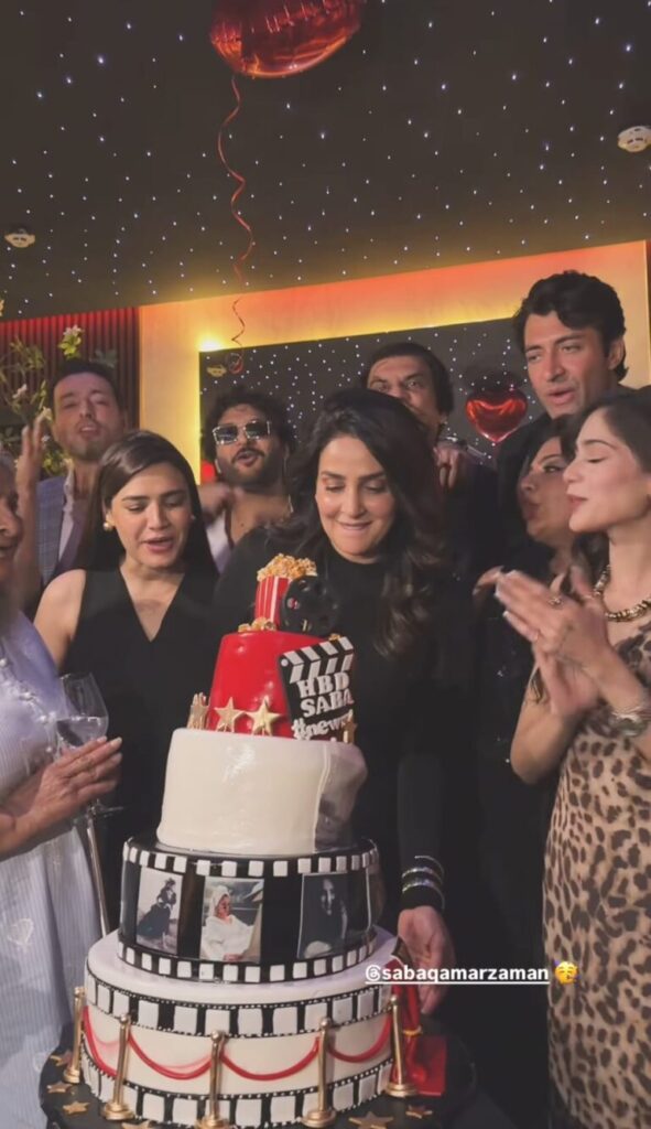 Saba Qamar celebrated her 42nd birthday in grand style, surrounded by a star-studded circle of friends including Sidra Niazi, Namra Shahid, Aima Baig, Bilal Saeed, and Ken Doll.